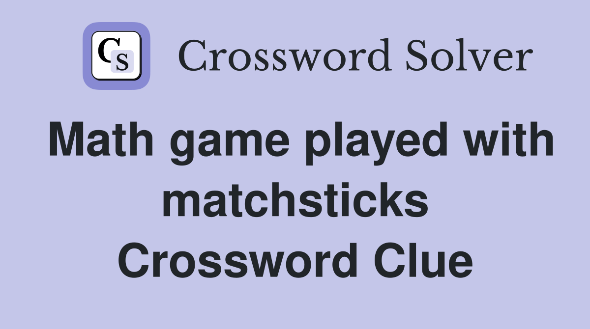 Math game played with matchsticks Crossword Clue Answers Crossword Solver