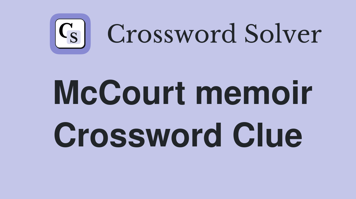 McCourt memoir Crossword Clue Answers Crossword Solver