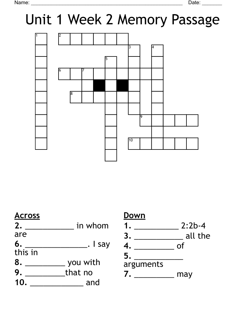 Unit 1 Week 2 Memory Passage Crossword WordMint
