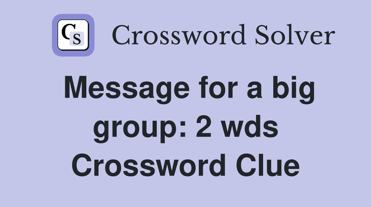 Message for a big group 2 wds. Crossword Clue Answers Crossword Solver