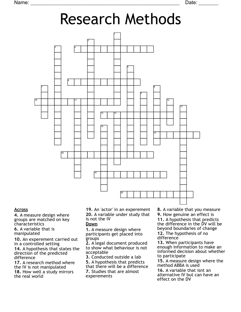Research methods crossword WordMint