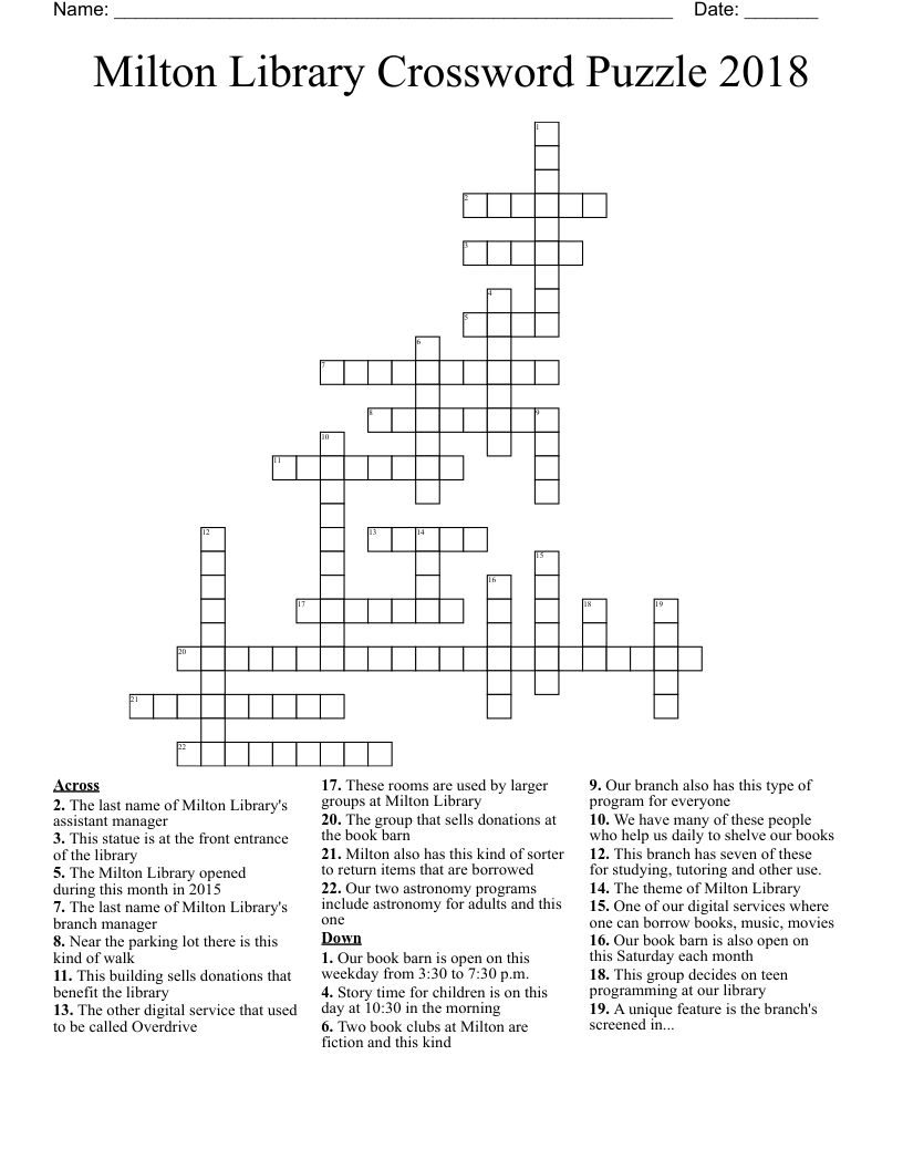 Web while searching our database we found 1 possible solution for the: Milton setting la times crossword. We have found 40 possible. Web the crossword solver found 30 answers to milton setting, 4 letters crossword clue. Web we have found 40 possible answers for this clue in our database.