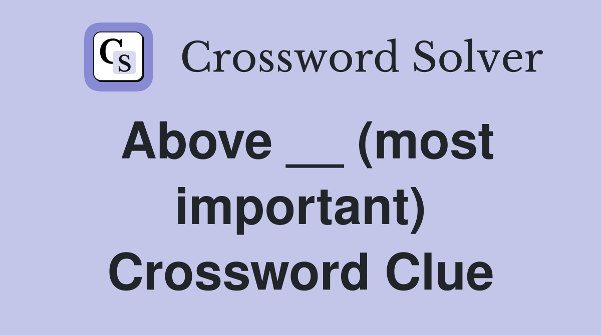 Above __ (most important) Crossword Clue Answers Crossword Solver