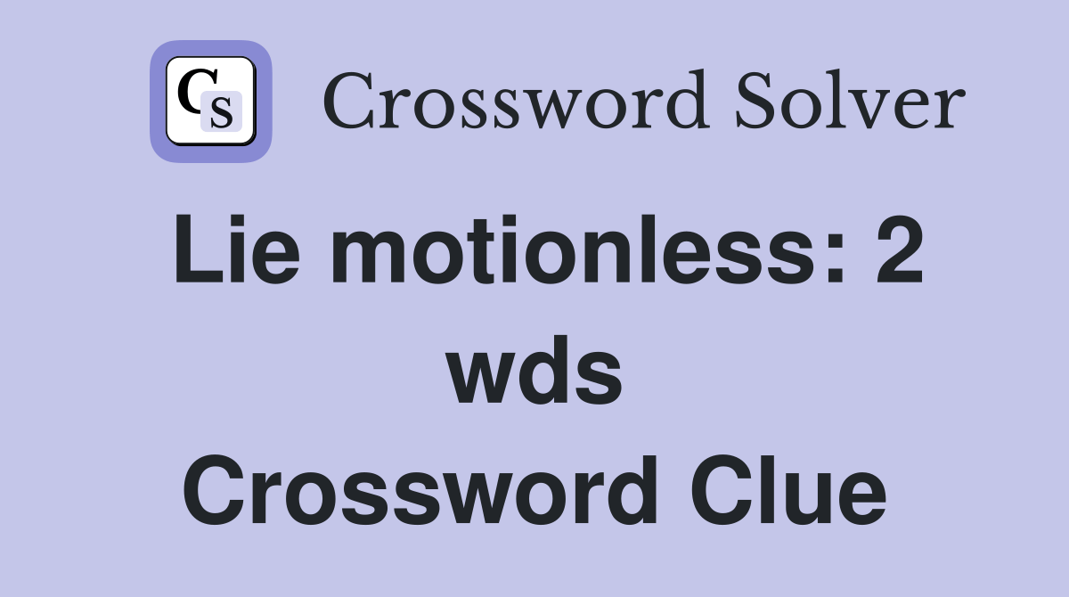 Lie motionless 2 wds. Crossword Clue Answers Crossword Solver
