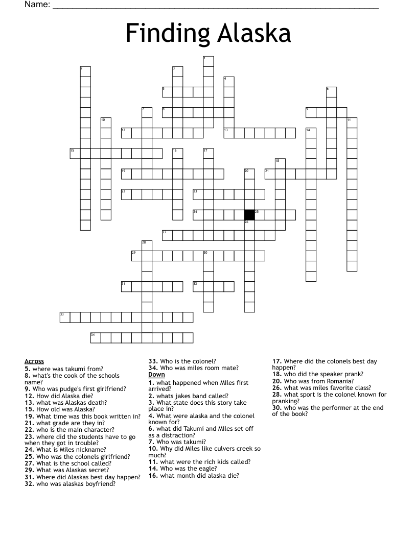 Looking for alaska Crossword WordMint