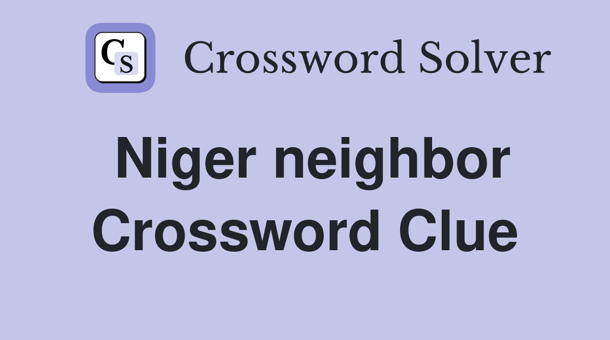 Web here is the solution for the niger’s neighbor clue featured in eugene sheffer puzzle on january 9, 2024. There are related clues (shown below). Web niger neighbor is a crossword puzzle clue that we have spotted over 20 times. The crossword solver finds answers to. We have found 40 possible.