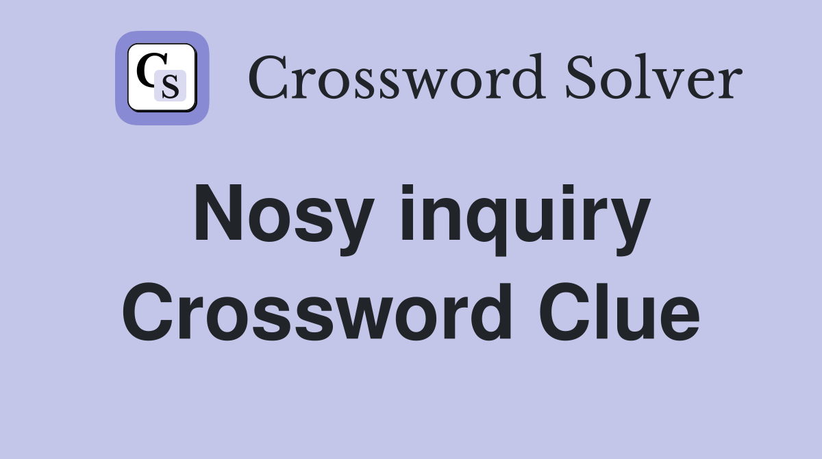Web today's crossword puzzle clue is a quick one: There are related clues (shown below). We have got the solution for the nosy inquiry crossword clue right here. This clue first appeared on at usatoday crossword puzzle, it can appear in the future with a.