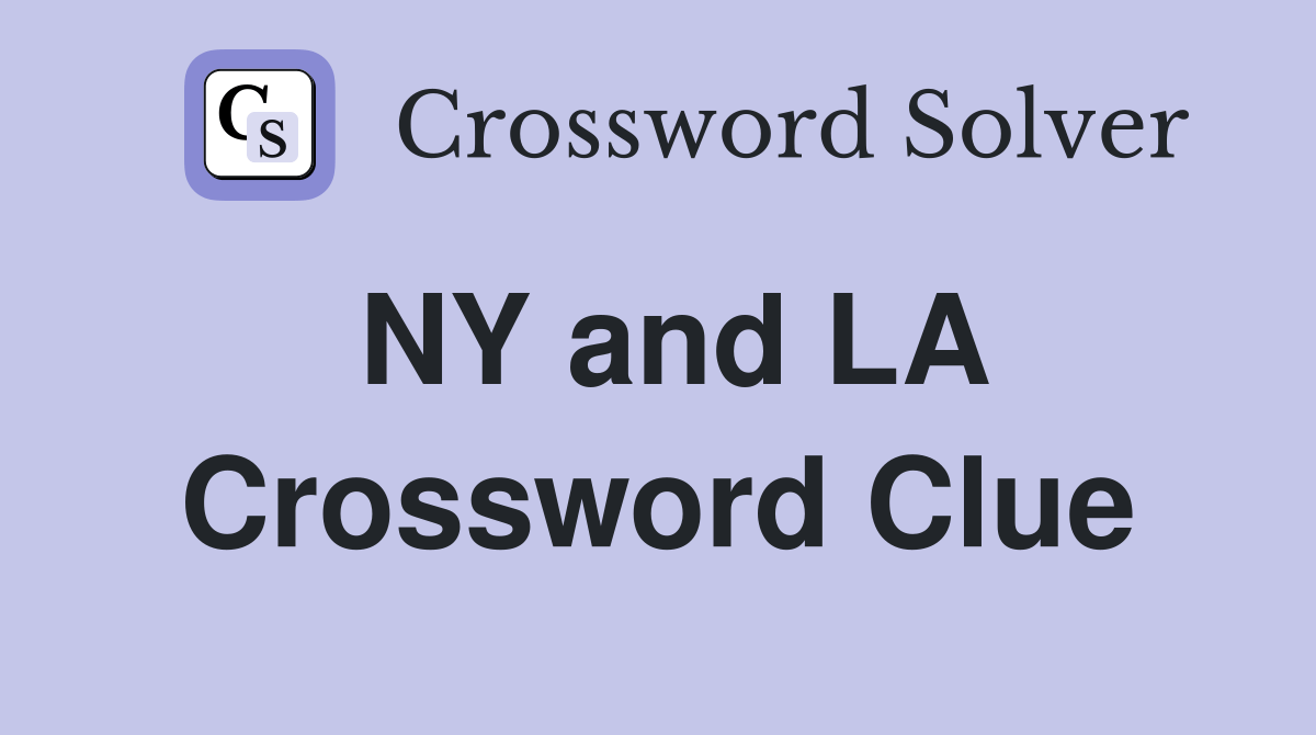 Web here is the answer for the: We will try to find the right answer to this particular crossword clue. Web while searching our database we found 1 possible solution for the: Did you find the solution of ny and la crossword clue?. Web here you will find the answer to the ny and la crossword clue with 3 letters.