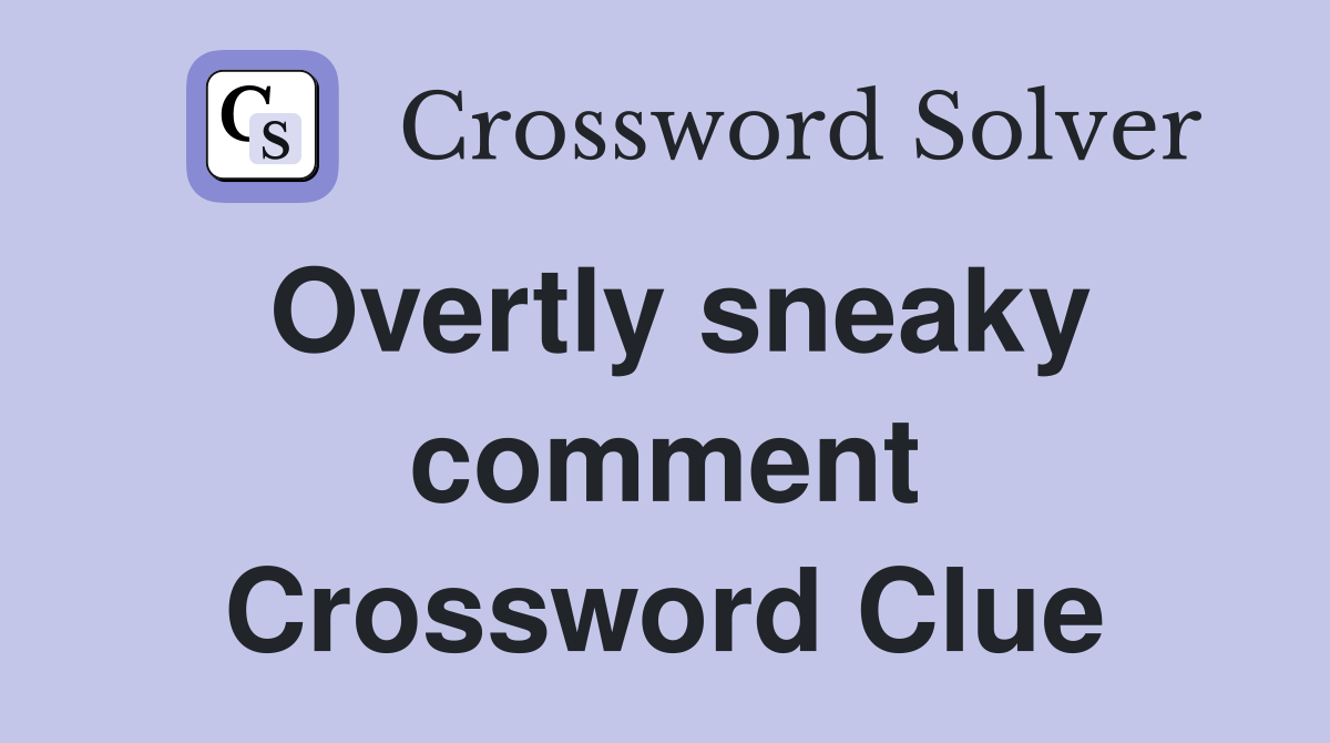 Web here are the possible solutions for overtly sneaky comment clue. Or you can use the. Web the crossword solver found 30 answers to overtly sneaky comment, 8 letters crossword clue. There are related clues (shown. Web overtly sneaky comment is a crossword puzzle clue that we have spotted 1 time.