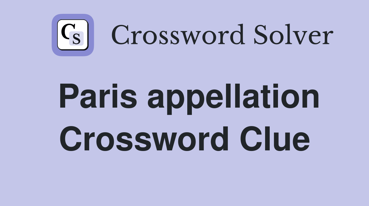 Web here are all the possible answers for paris appellation crossword clue which contains 3 letters. The answer is nom, a 3. Web here is the answer for the crossword clue paris appellation last seen in eugene sheffer puzzle. This clue was last seen on eugene sheffer. The crossword solver finds answers to.