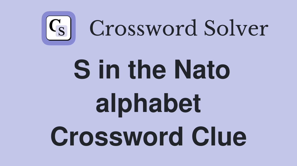 S in the Nato alphabet Crossword Clue Answers Crossword Solver