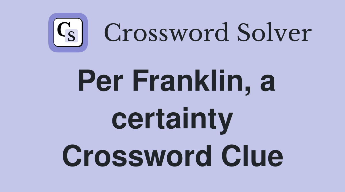 Per Franklin, a certainty Crossword Clue Answers Crossword Solver