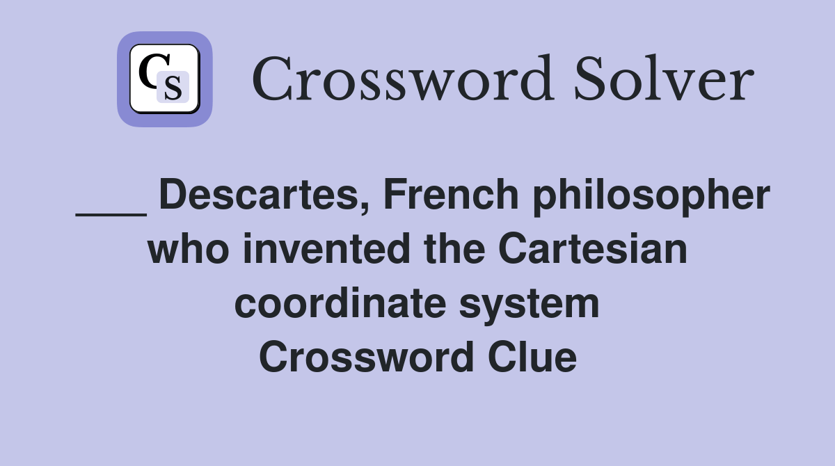 Descartes, French philosopher who invented the Cartesian coordinate system Crossword Clue