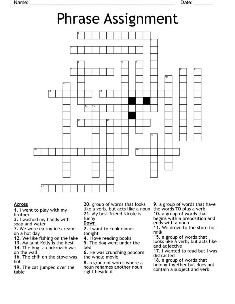 Introductory Elements Word, Clause,or Phrase Crossword WordMint