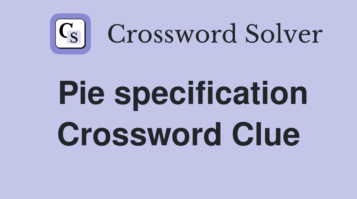 Web here is the answer for the crossword clue pie specification last seen in universal puzzle. Here are the possible solutions for pie specification. The crossword solver finds answers to. Web on this page you will find the pie specification crossword clue answers and solutions. This clue was last seen on.