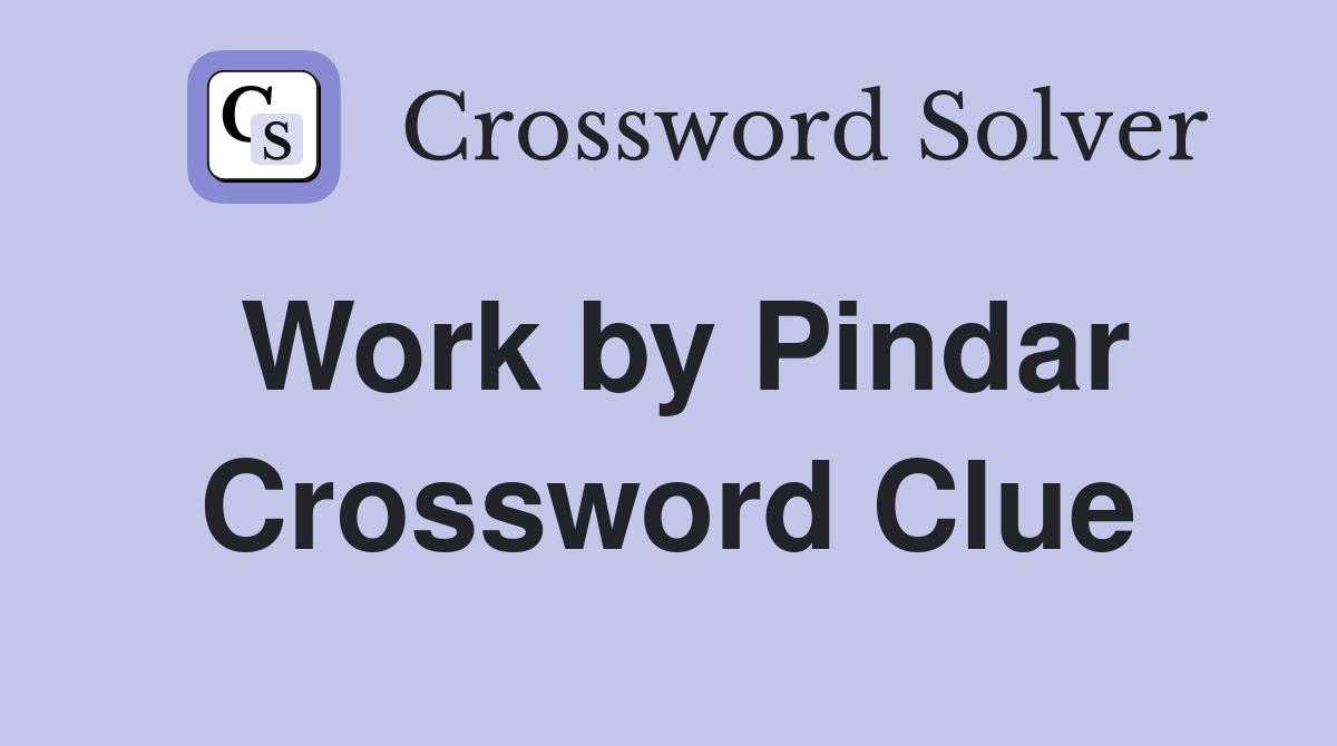 Work by Pindar Crossword Clue Answers Crossword Solver