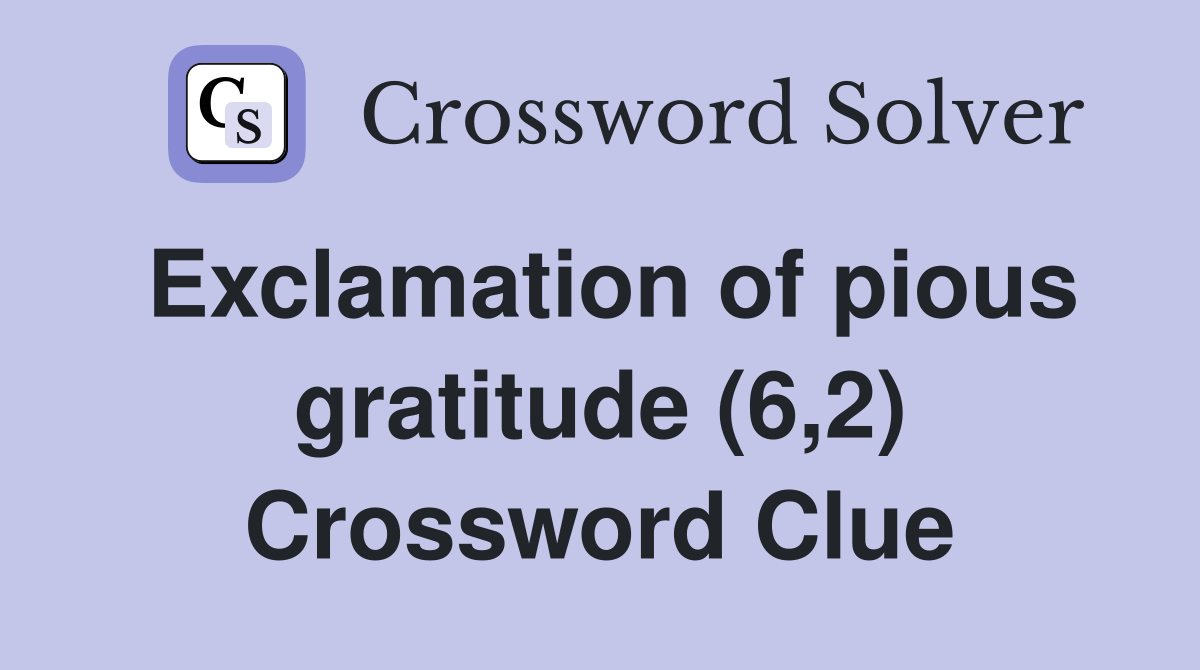 Exclamation of pious gratitude (6,2) Crossword Clue Answers Crossword Solver