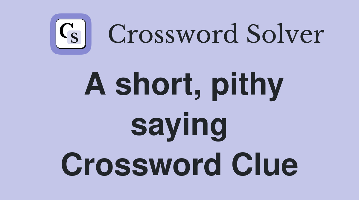 A short, pithy saying Crossword Clue Answers Crossword Solver