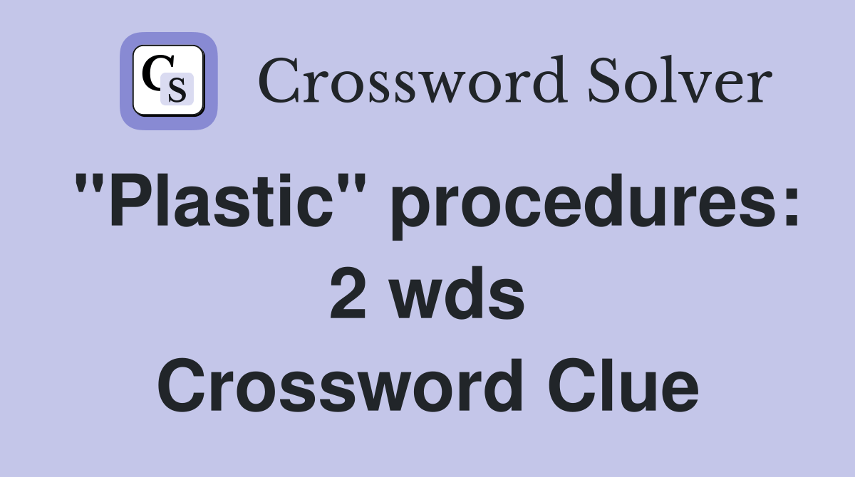 "Plastic" procedures 2 wds. Crossword Clue Answers Crossword Solver