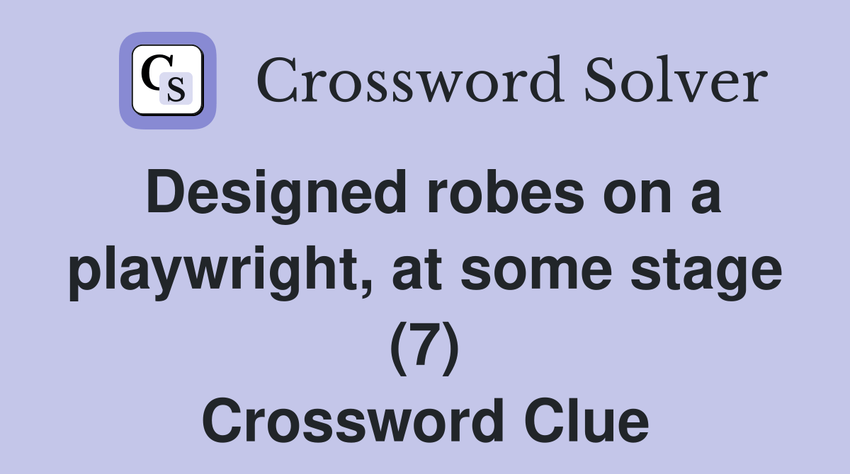 Designed robes on a playwright, at some stage (7) Crossword Clue Answers Crossword Solver