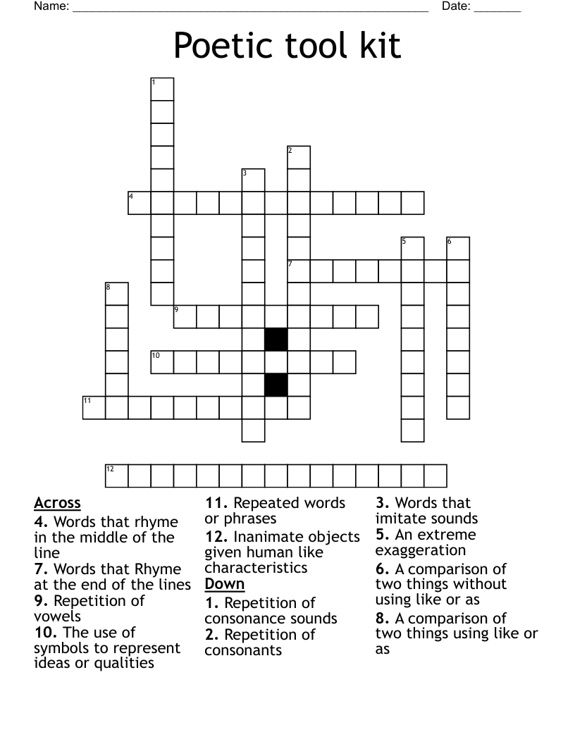 Poetic tool kit Crossword WordMint