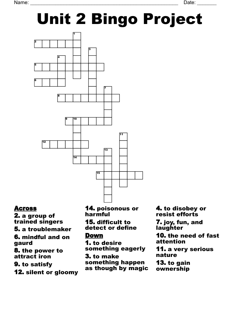 Unit 2 Bingo Project Crossword WordMint