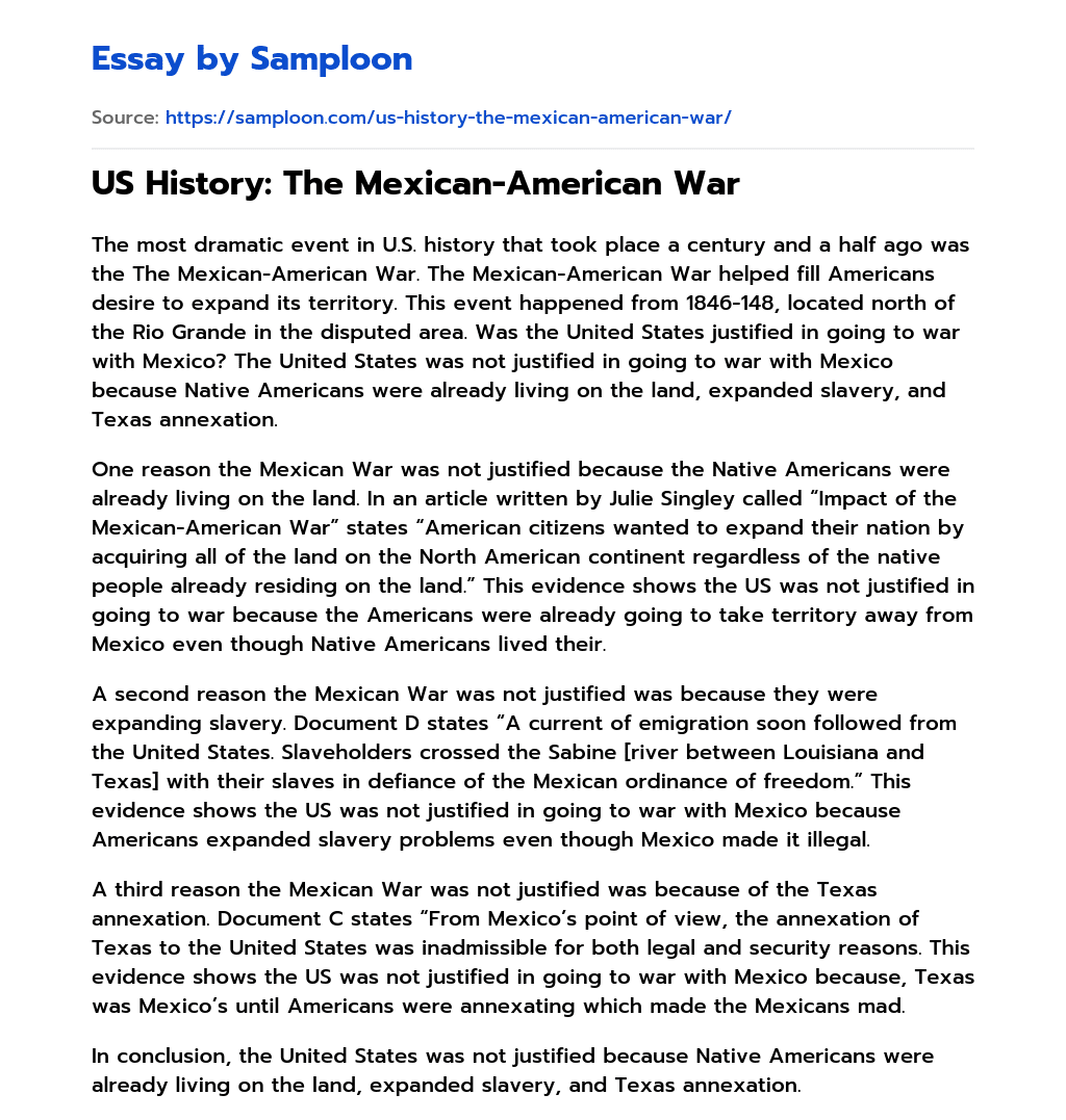 ≫ US History The MexicanAmerican War Free Essay Sample on