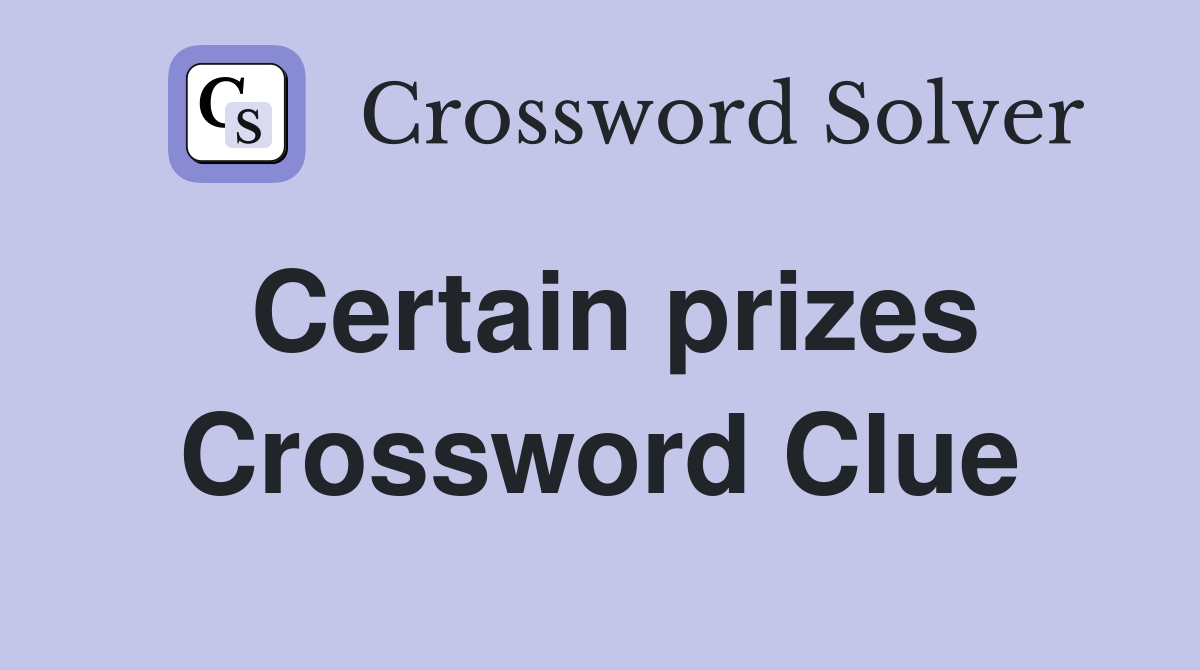 Web our crossword solver found 10 results for the crossword clue prizes. Web here is the answer for the crossword clue prize last seen in telegraph quick puzzle. Web here is the answer for the crossword clue prizes last seen in wall street journal puzzle. Web all synonyms & crossword answers with 5, 6 & 7 letters for prize found.