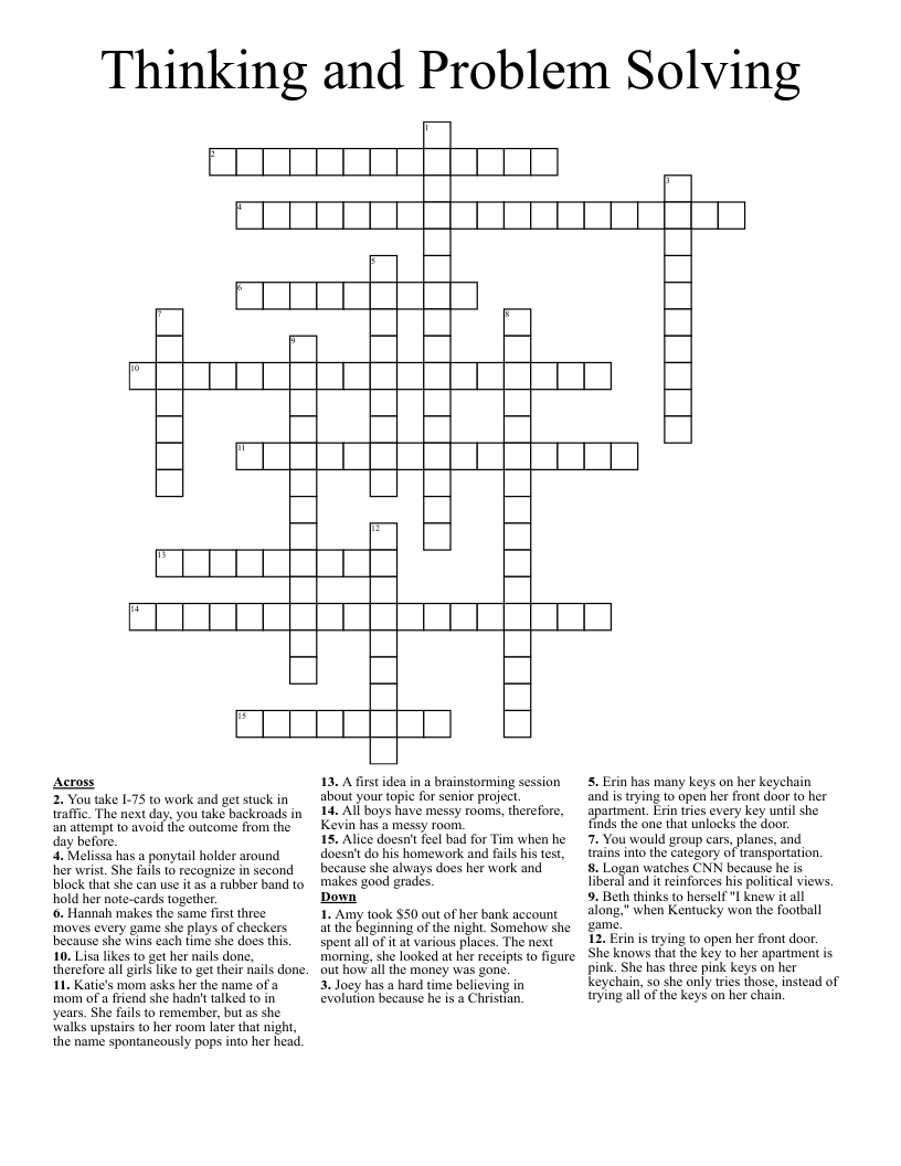 Thinking / Problem Solving Crossword Puzzle WordMint