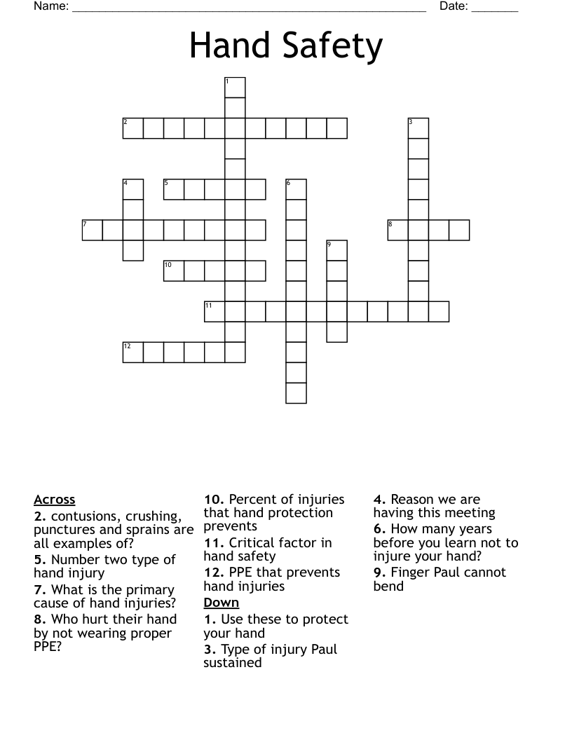 Hand Safety Crossword WordMint