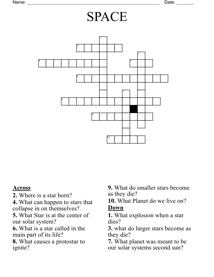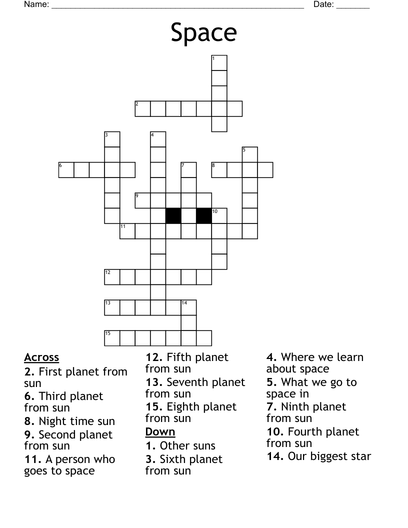 Space Crossword Puzzle for Kids Crossword Printable Pdf Etsy