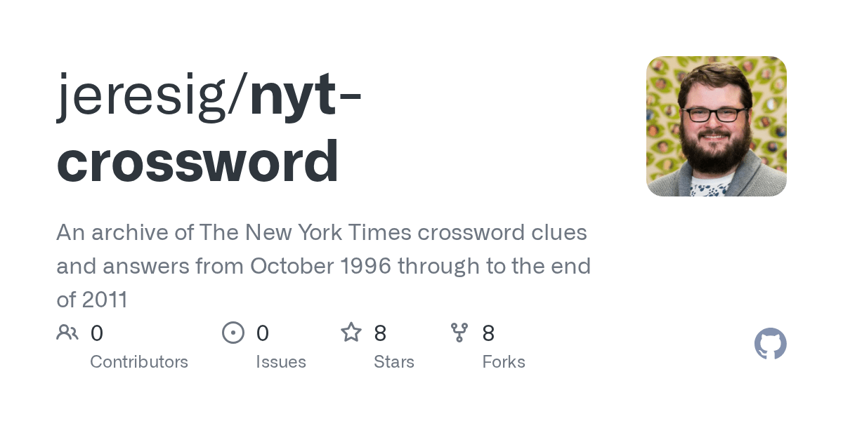 GitHub jeresig/nytcrossword An archive of The New York Times crossword clues and answers