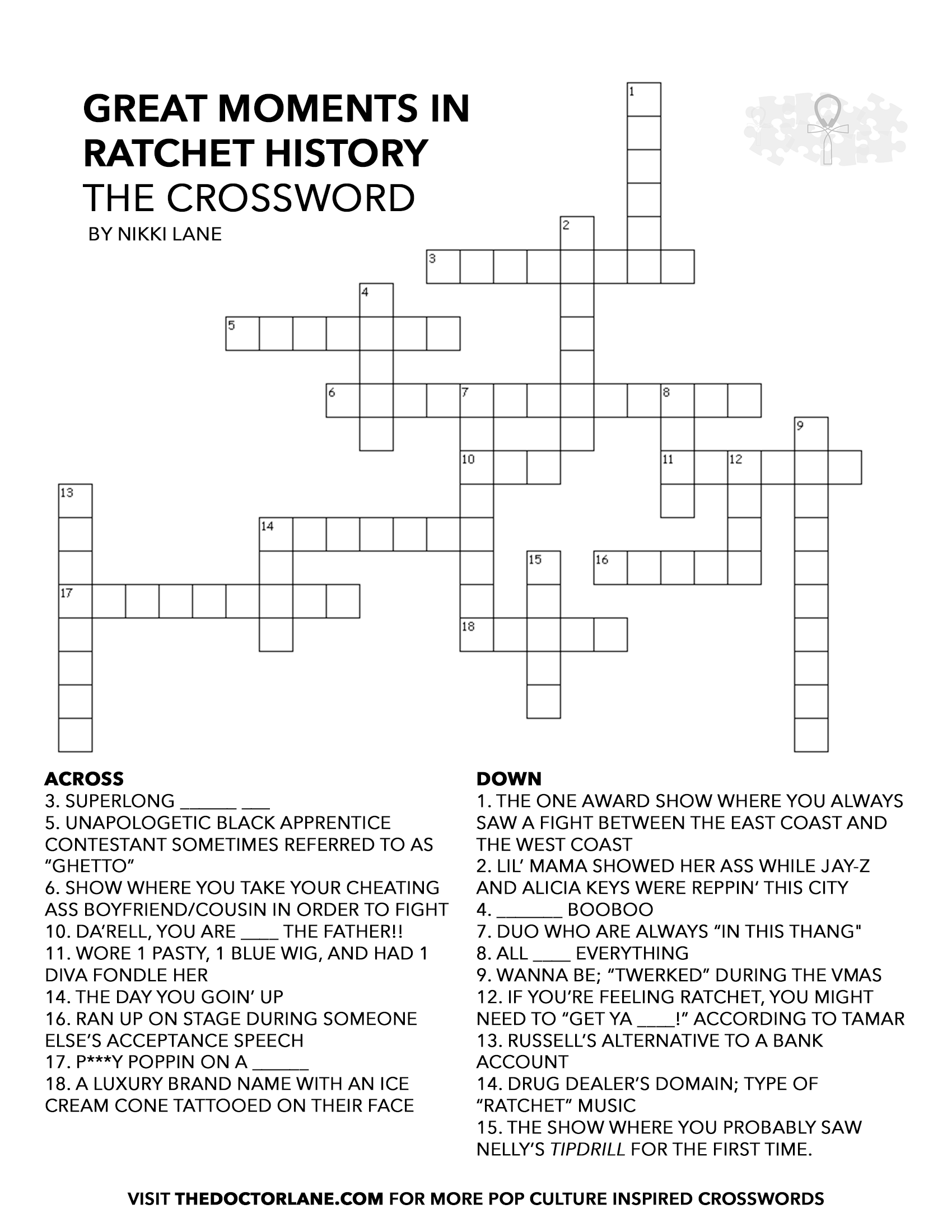 Great Moments in Ratchet History The Crossword Nikki Lane, Ph.D