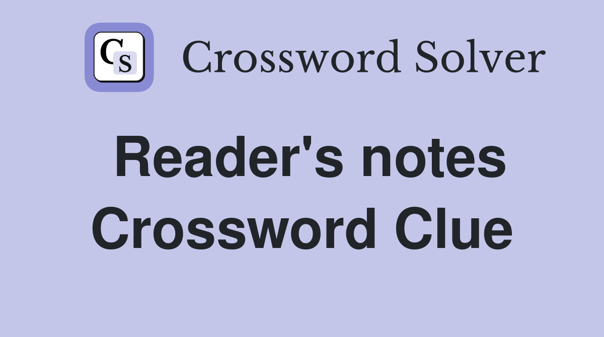 Here is the solution for the reader's notes clue featured in universal puzzle on january 2, 2024. The best answer we found was marginalia, which has a. The crossword solver finds answers to. Web the crossword solver found 30 answers to reader's notes, 10 letters crossword clue.