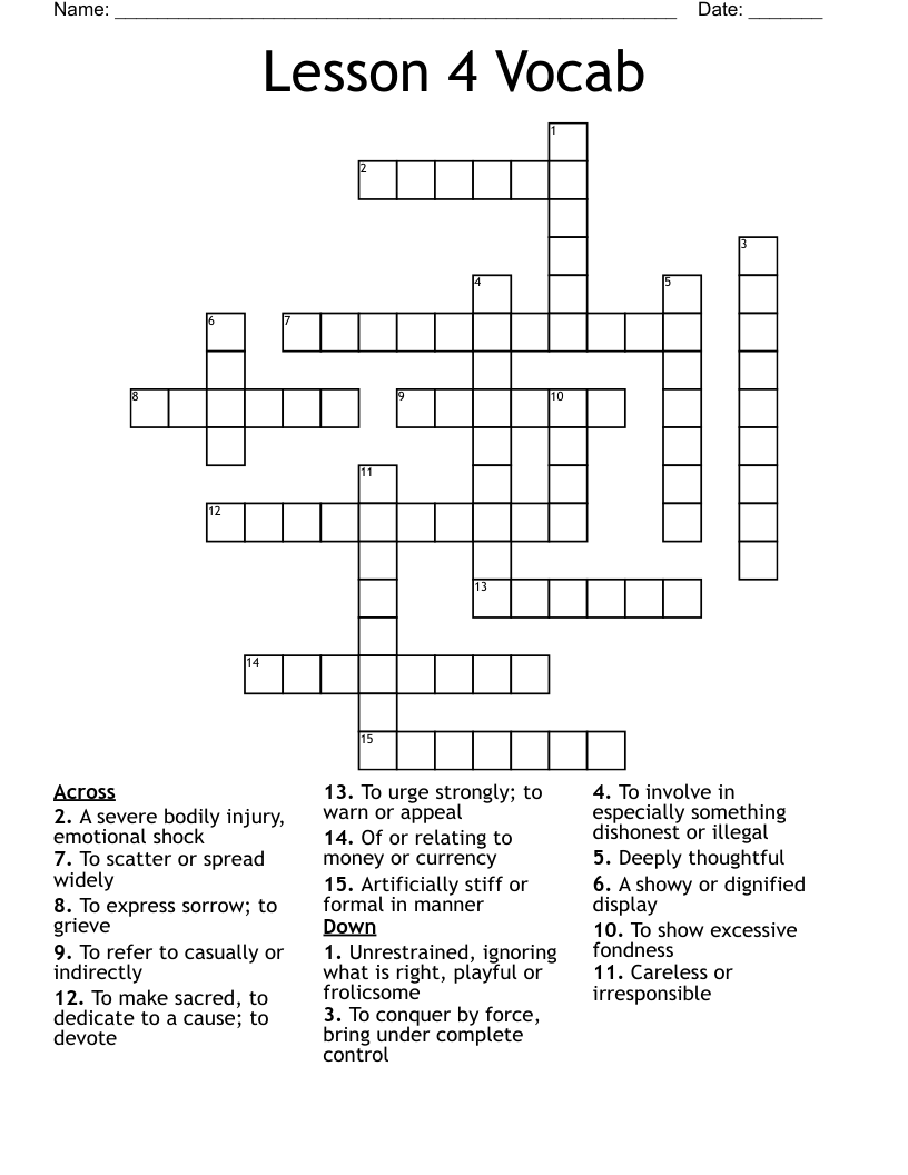 Lesson 4 Vocab Crossword WordMint