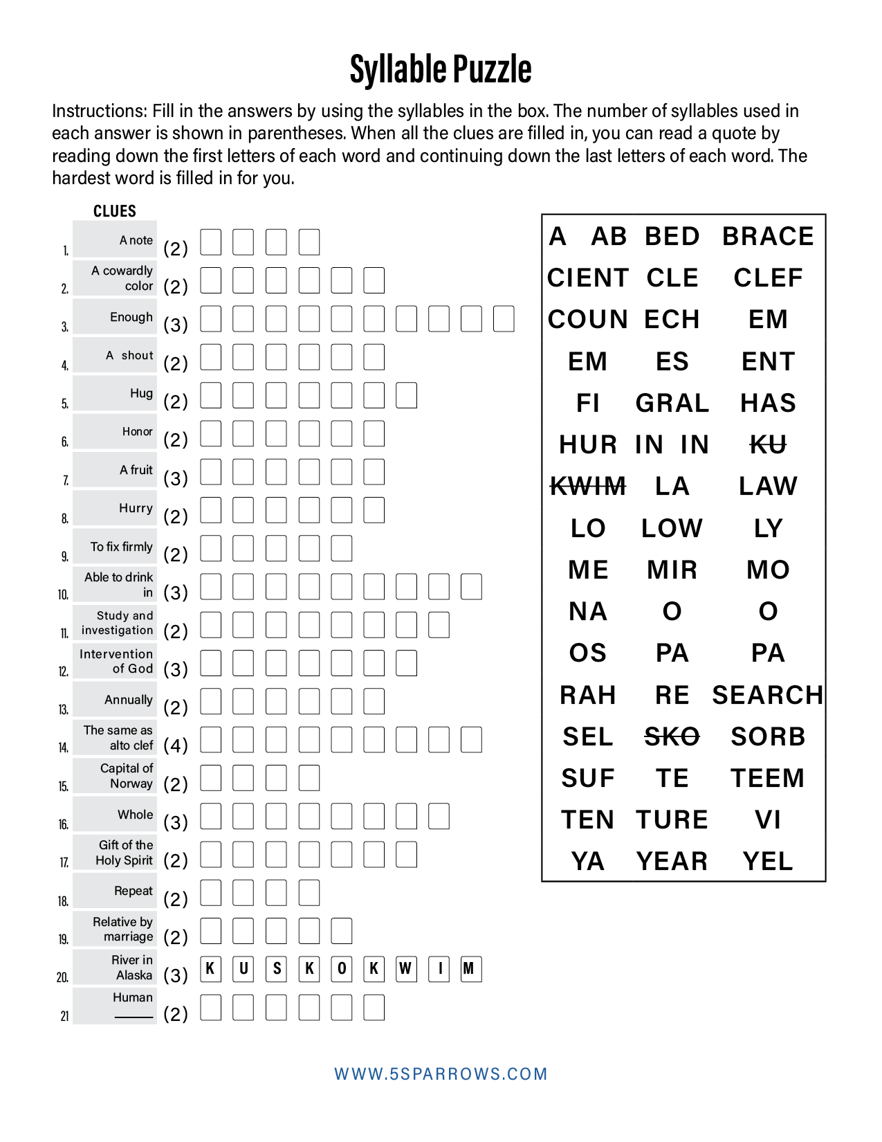 SORT 4 EARLY SYLLABLES AND AFFIXES Crossword WordMint