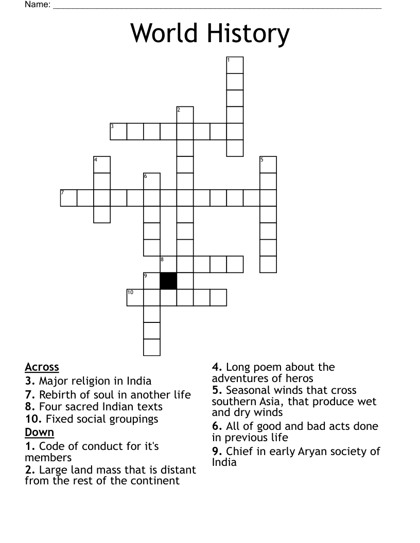 World History Crossword Puzzle WordMint