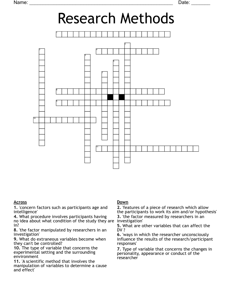 Research Methods Crossword Puzzle