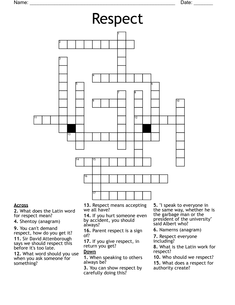 Respect Crossword Puzzle Printable Printable Crossword Puzzles