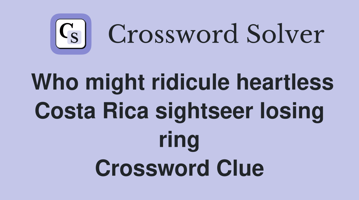 Who might ridicule heartless Costa Rica sightseer losing ring Crossword Clue Answers