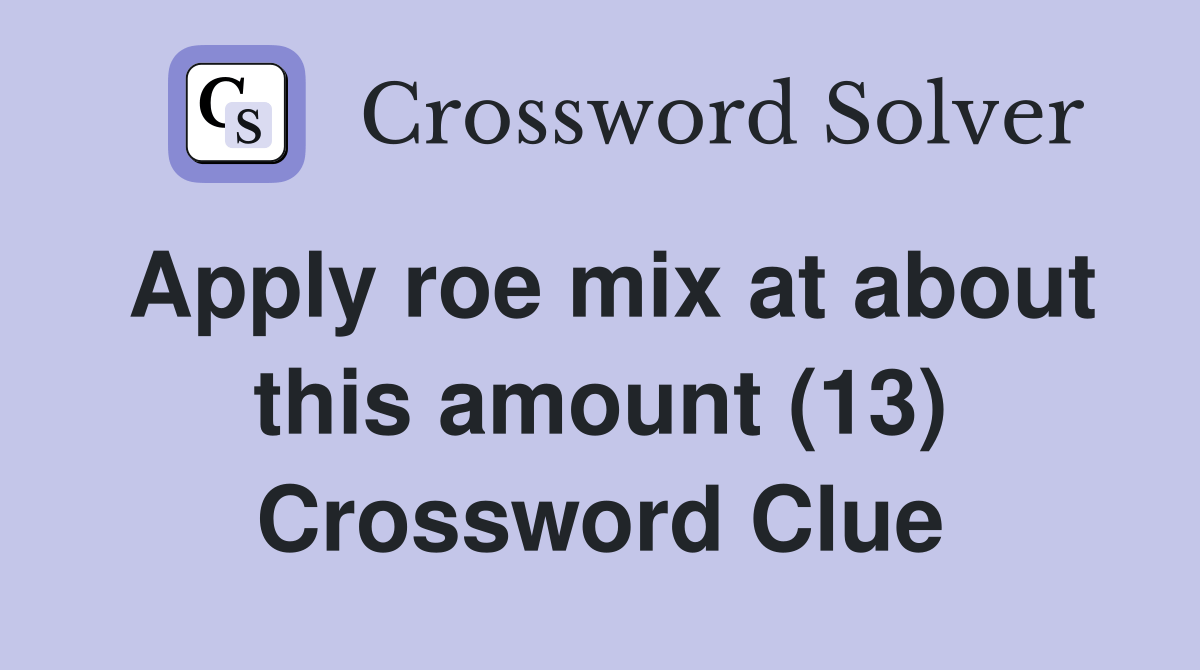 Apply roe mix at about this amount (13) Crossword Clue Answers Crossword Solver