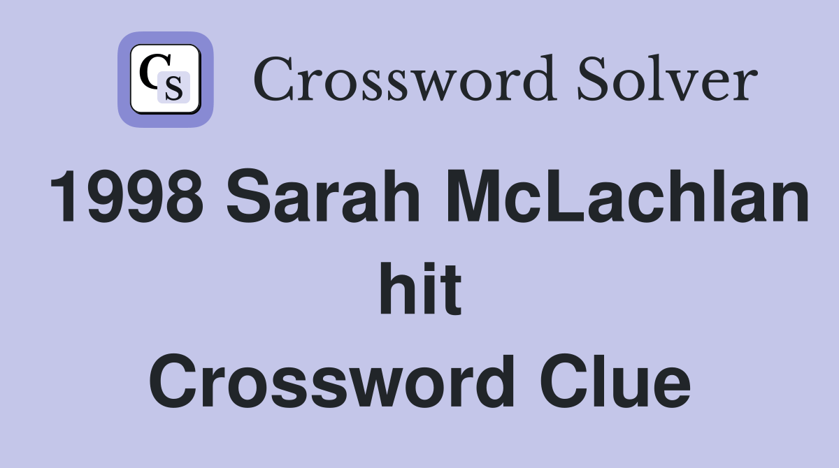 1998 Sarah McLachlan hit Crossword Clue Answers Crossword Solver