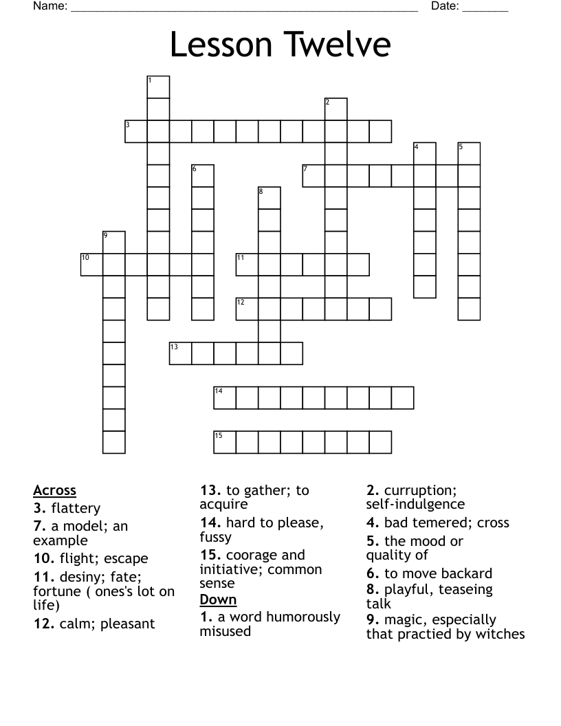 Lesson Twelve Crossword WordMint