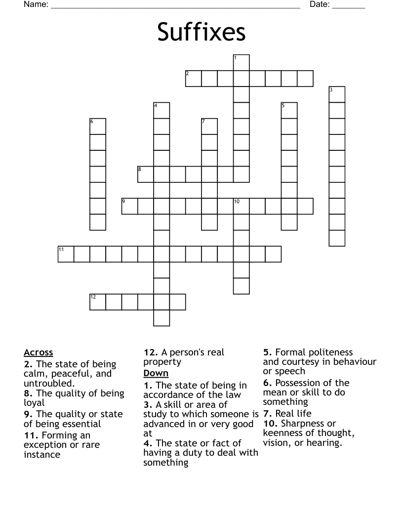 Suffix Meanings Crossword WordMint