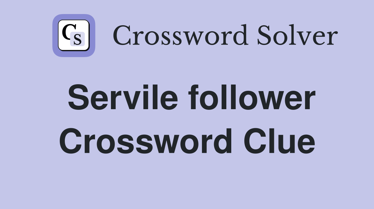 Web here is the answer for the crossword clue servile follower last seen in telegraph quick puzzle. Web find out what servile follower means and how to solve this crossword puzzle clue. The crossword solver finds answers. Web find the definition and synonyms of servile follower, a crossword clue with 6 letters. We will try to find the right answer.