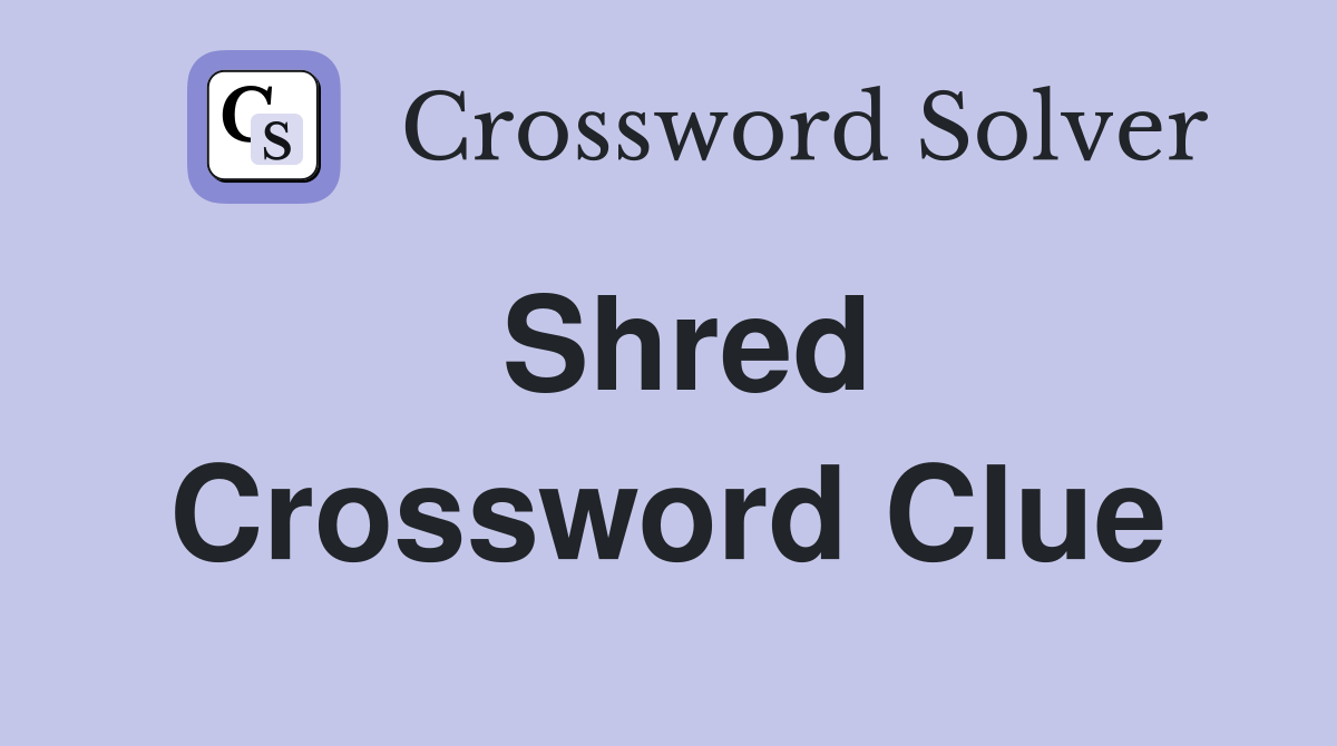 The crossword solver finds answers to classic. We have found 40 possible answers for. We didn't find answers to the clue “shredding” but we did find clues where “shredding” could be the answer: Crossword clue here is the solution for the shred clue featured in thomas joseph puzzle on march 30, 2024. Web here is the answer for the crossword.