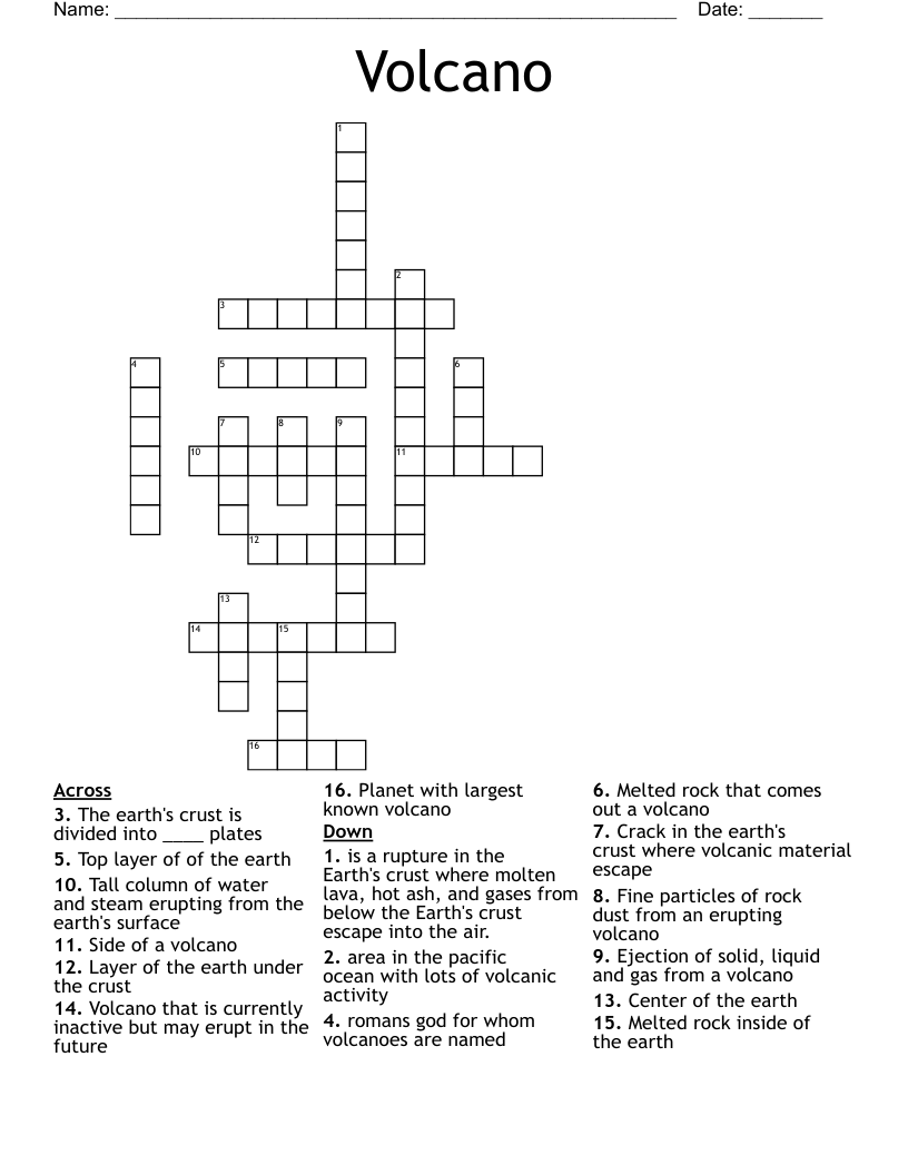 Volcano Crossword Puzzle Printable Printable Crossword Puzzles