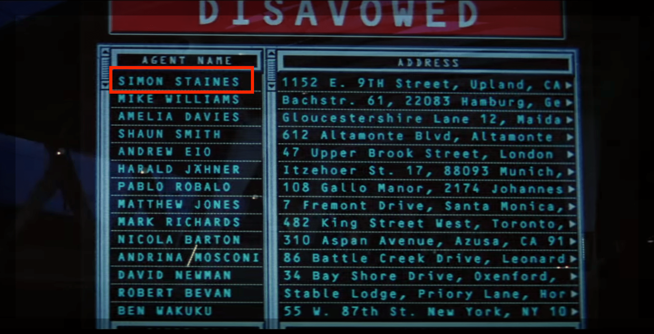 In Mission Impossible (1996), one of the agent's names is Simon Staines. Simon Staines was the