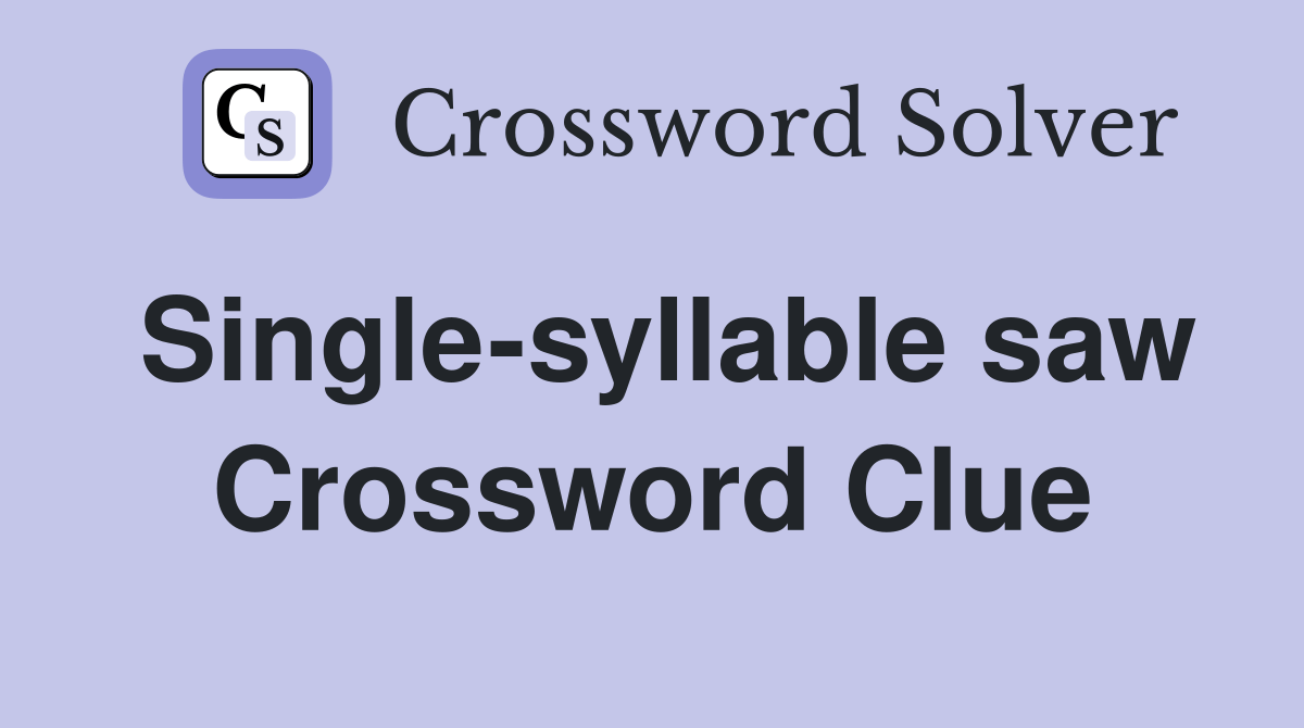 Singlesyllable saw Crossword Clue Answers Crossword Solver