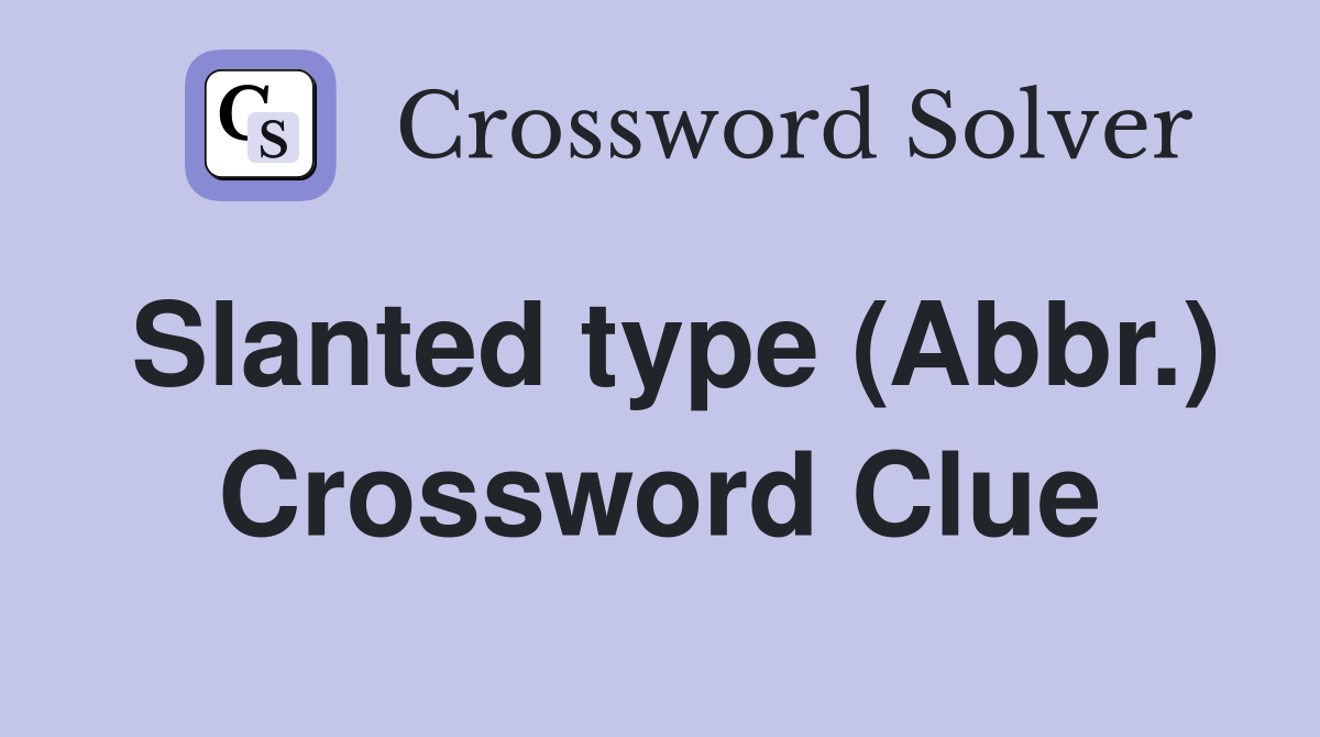 Slanted type (Abbr.) Crossword Clue Answers Crossword Solver